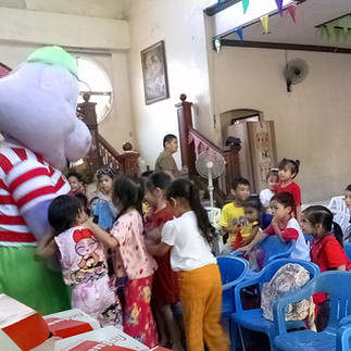 The fun kicked off with a prayer, then laughter took over as a clown duo entertained with puppets, magic tricks, and games. Mr. Neil even joined one game, much to the children’s delight! Every child got a prize. The sweetness of the Cotton Candy wowed the children, but the biggest smiles came when Chummy Chum himself appeared and danced with the crowd.